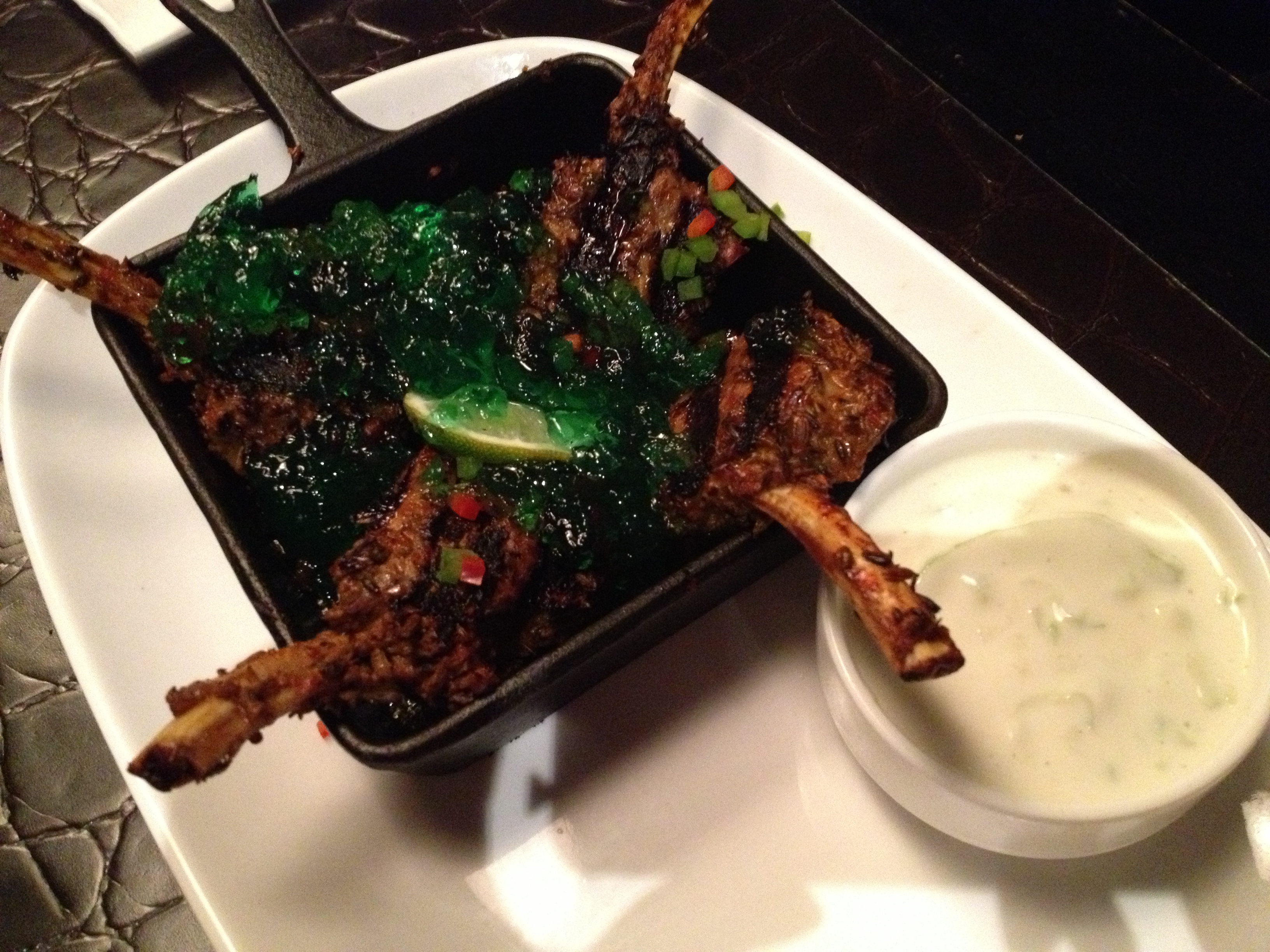 The service was very quick and efficient. Not long after placing our orders, the food arrived. We shared and ordered the Lollipop Buffalo Wings ($21), Firey Mojito Lamb Chops ($34) and the BBQ “JD & Coke” Ribs ($36). The Lollipop Buffalo Wings came with celery sticks and blue cheese fondue. Although it was a bit spicy, the lollipop buffalo wings was very delicious and it was finger licking good.