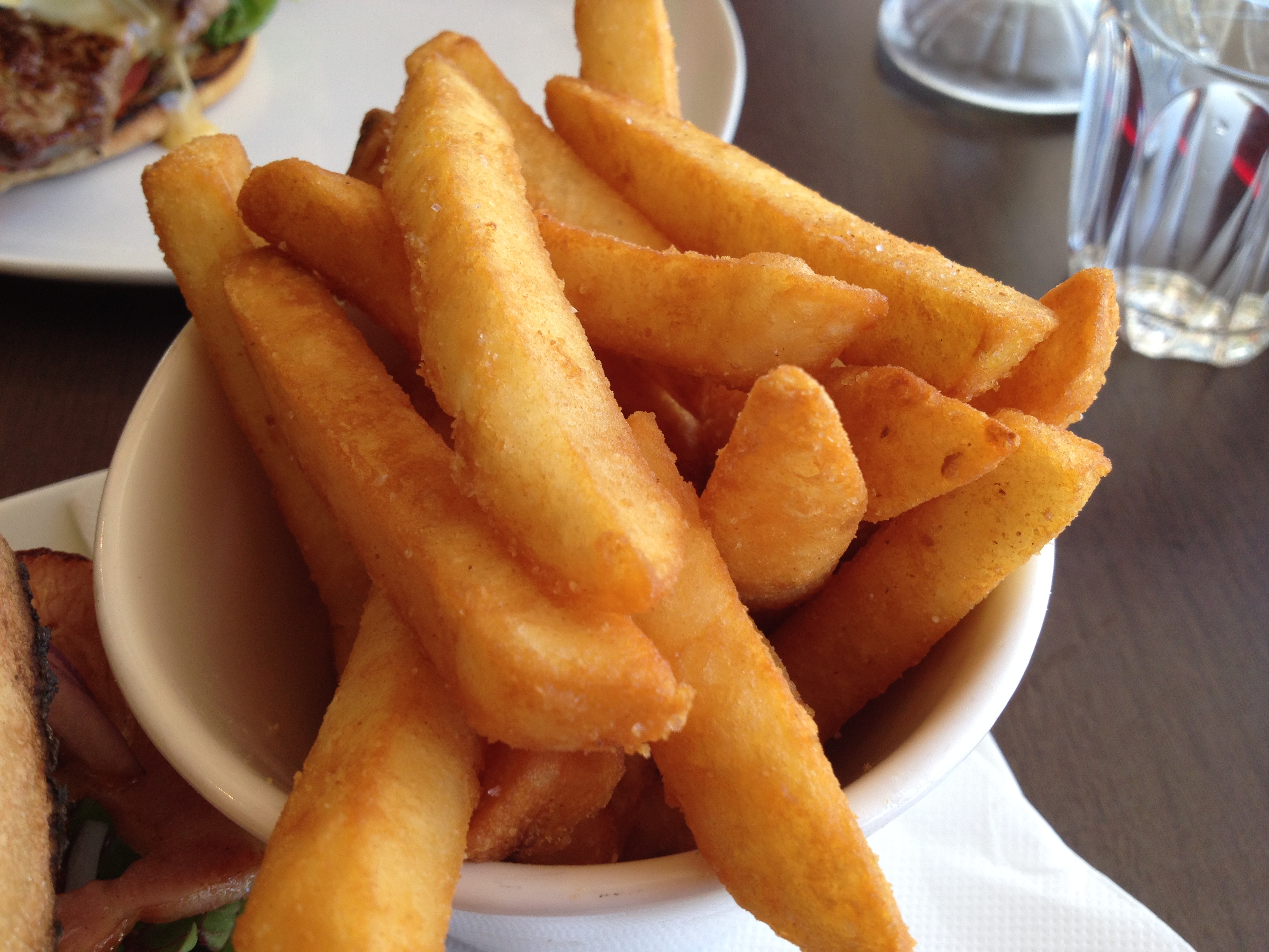 Mum ordered the Eggy Steaky ($16) which consists of a juicy and tender steak, creamy Tasmanian brie, fried egg, Spanish onion jam, tomato, mixed gourmet lettuce and aioli. To accompany our burgers, we also ordered a side of battered chips ($4). According to mum, she really enjoyed the Eggy Steaky and thought that it was very tasty. Just like the F.B.A, it was generous in portion.