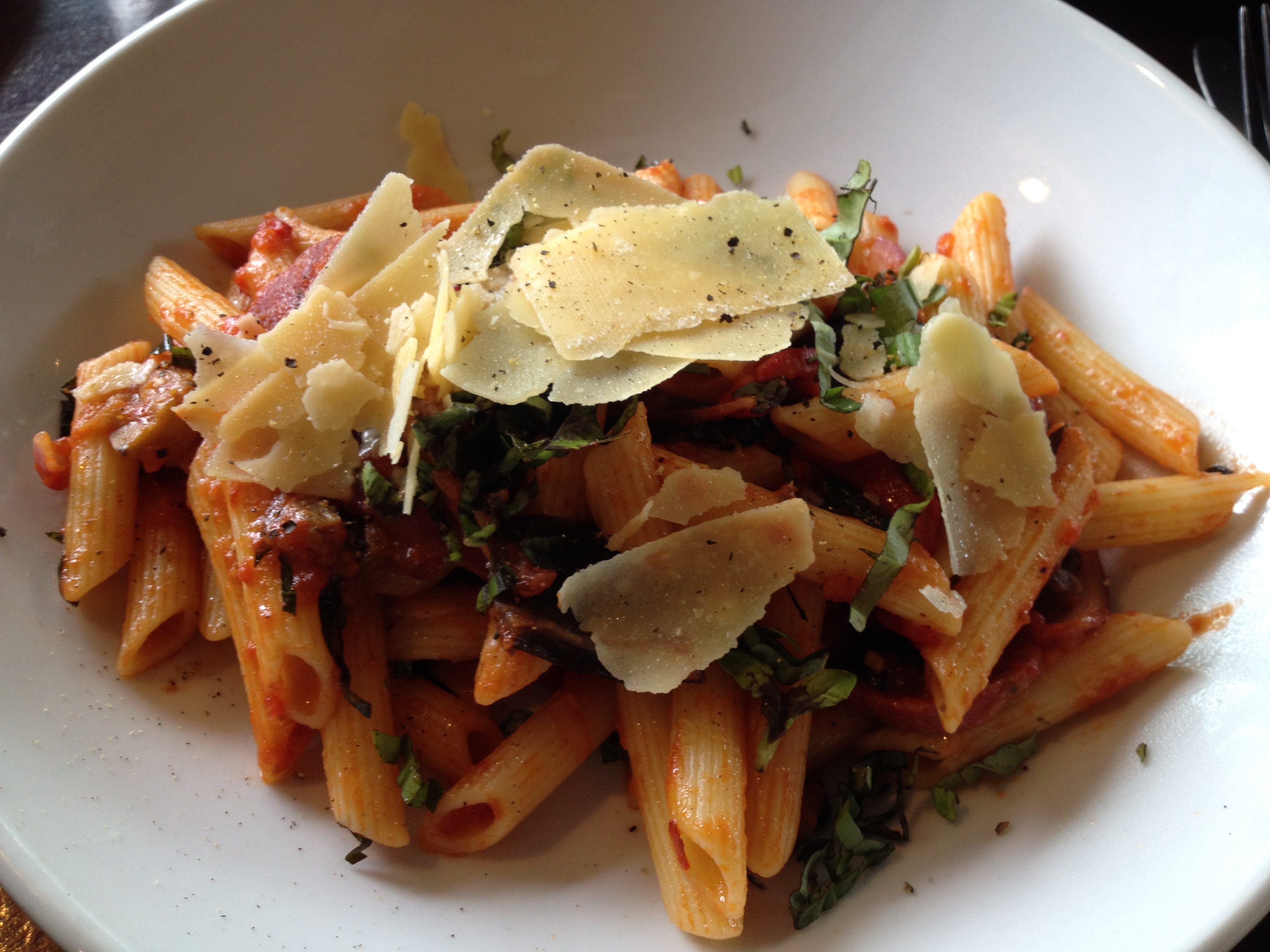 The cakes at the front counter and the cookies and paninis looked very tempting indeed. After going through the menu and having a look at the Specials, I eventually came to a decision and ordered the Penne Arrabiatta with Cacciatore, roasted eggplant and capsicum with Napolitana sauce ($18). The portion was very decent and I thought that the pasta was delicious. It was fresh and full of flavour. The Napolitana sauce blended well with the pasta too. Overall, the pasta was cooked perfectly and the dish was executed well.