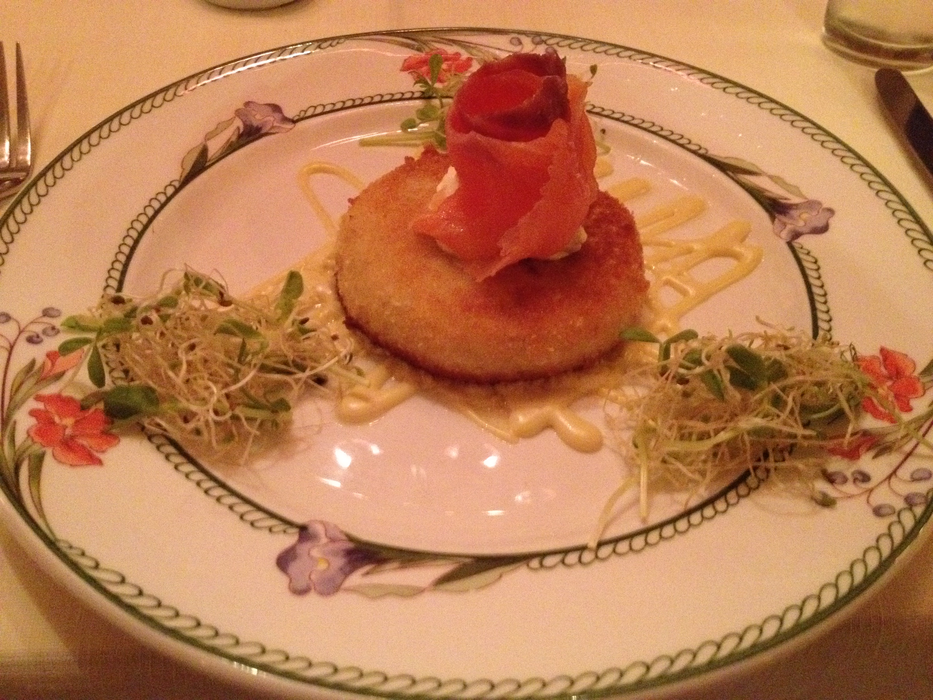 Feta Fritter with Smoked Salmon and Sour Cream