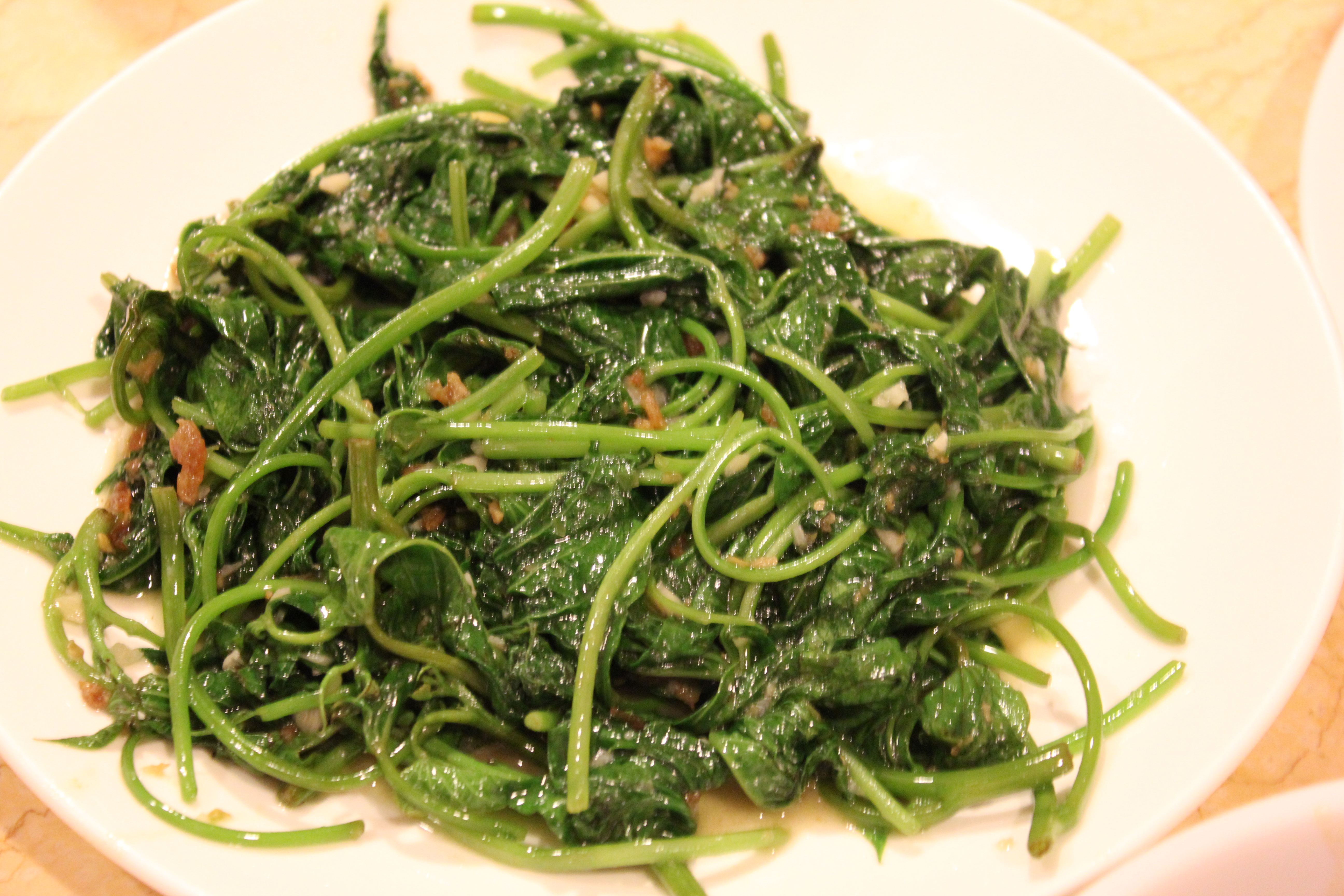 Daun Keledek with Lime Juice, Dried Shrimps and Chili Padi Paste