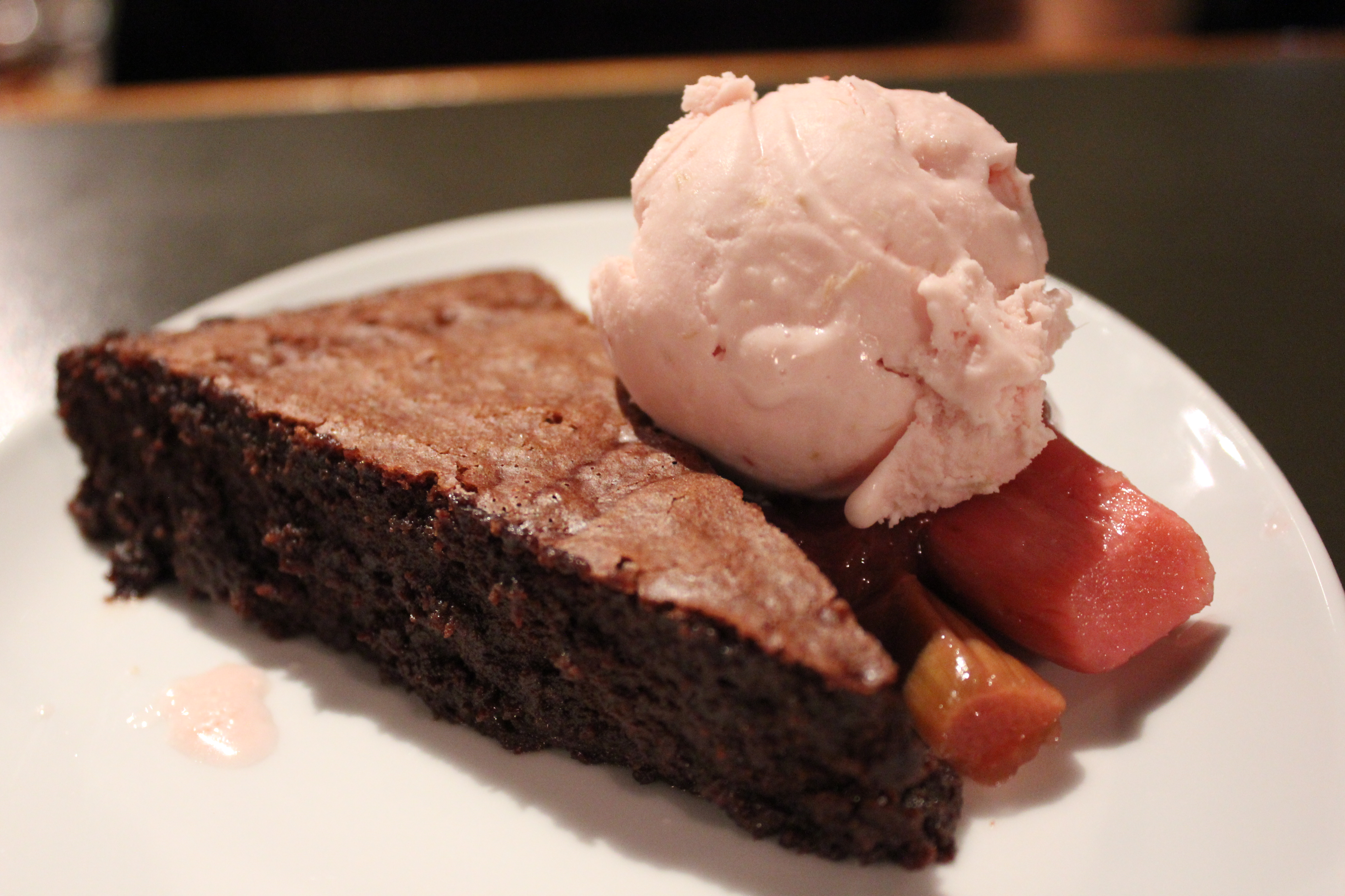 Chocolate Nemesis, rhubarb and raspberry gelato