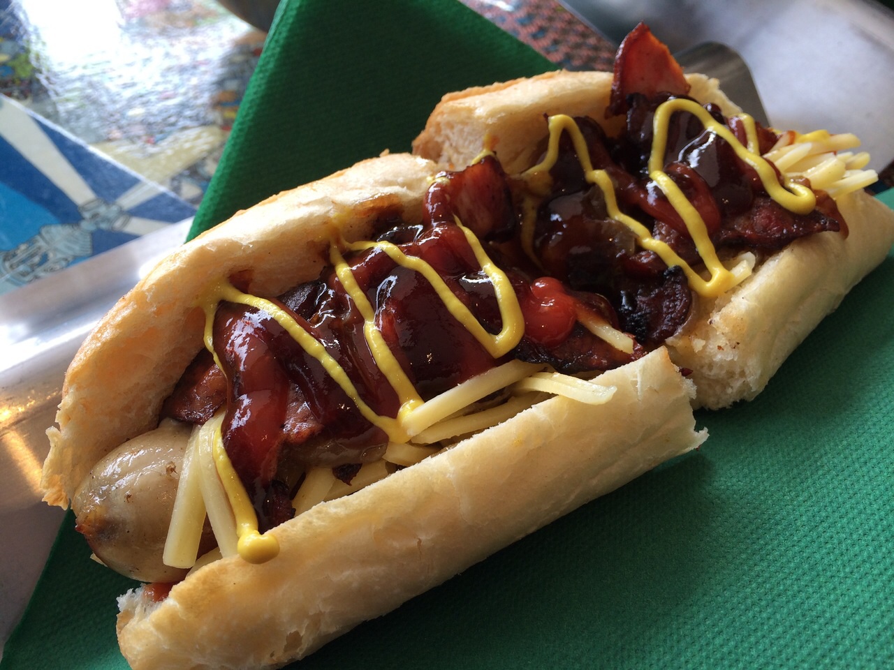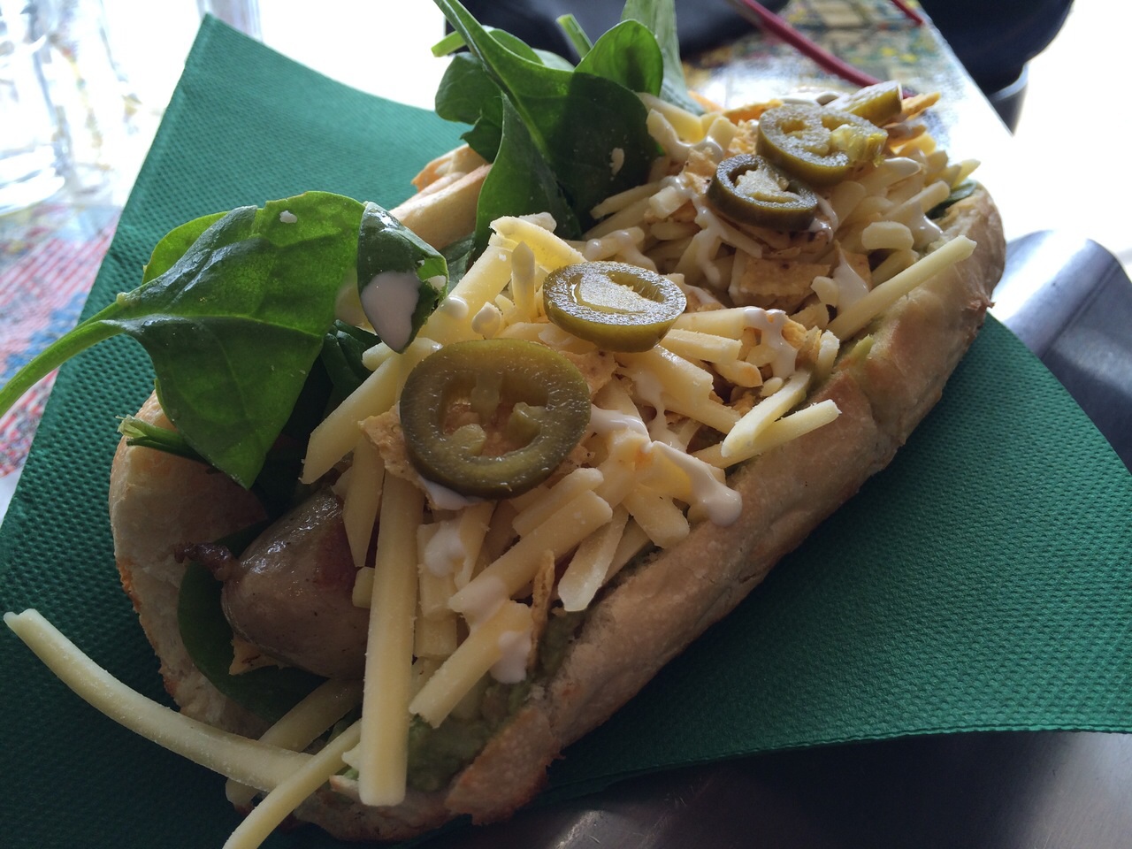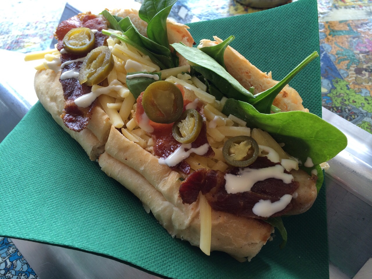 As Mum loves her chili kick, she went for the Rukus ($13.50) from the Dogs on Fire section. The Rukus consists of premium bratwurst, chili and lime sambal, crispy prosciutto, spinach, cheddar, sour cream and jalapenos. Just like the Mischief and the Punk hot dogs, the combination of flavours from the chili and lime sambal actually worked well in the Rukus, giving some nice kick and acidity. A perfect choice for those who like it spicy.
