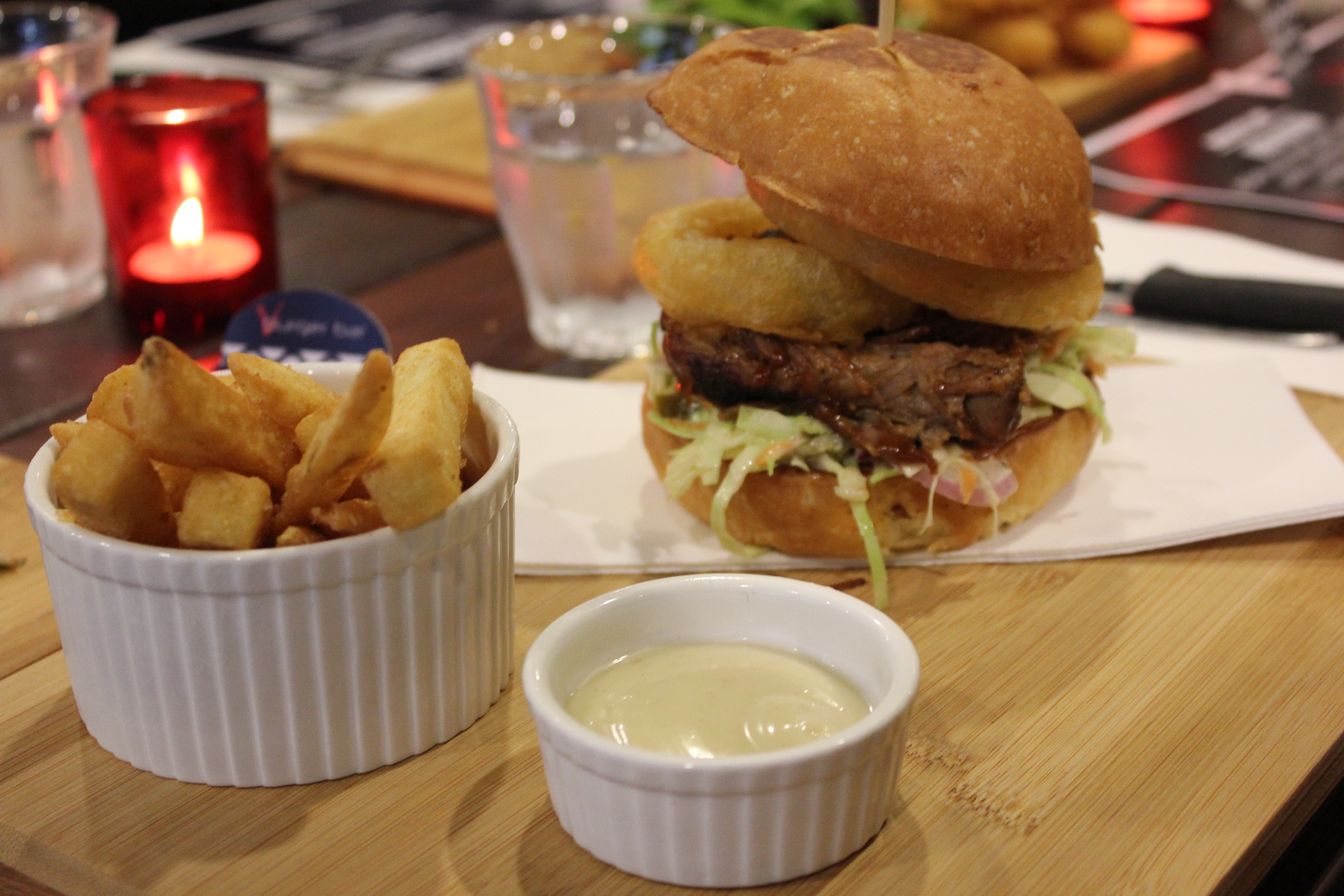Yesterday, Matt and I attended the launching of the Brioche Line at V Burger Bar’s Blogger Nite along with other Perth bloggers at V Burger Bar Floreat Forum. When we arrived, there was a long table set up specially for guests with roses and candles as decorations in the middle. Together with champagne and wine to start off, it was a celebration to launch the brand new brioche line. During the night, we mingled around with the shareholders and also got to know a little bit about V Burger Bar. We also took the time to get to know and have a chat with bloggers, Yoshika from Everyday Weekends and Shaun from Perth Food Review. Be sure to check out their blogs too!
