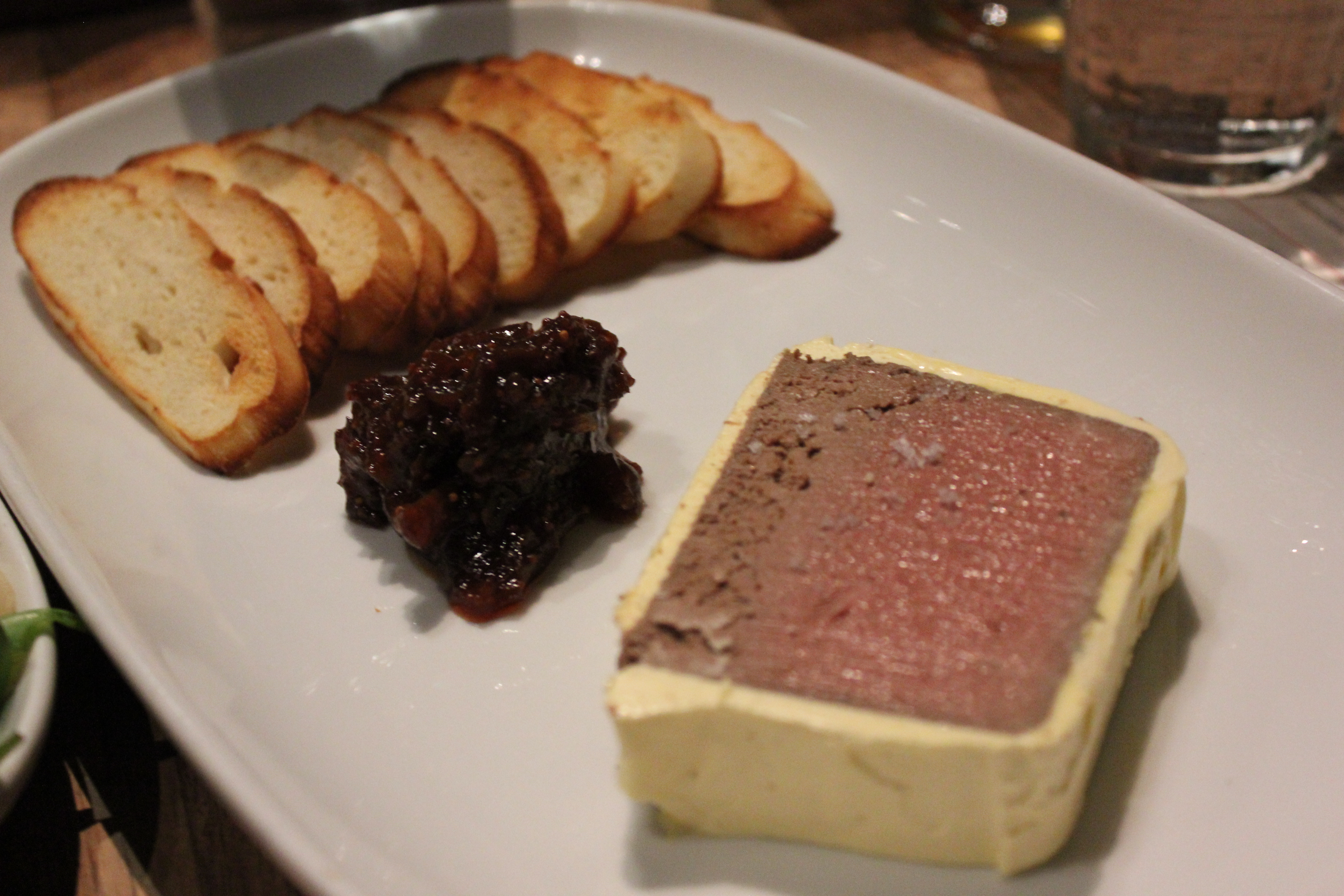 Chicken Liver Parfait, fig and pear chutney, baguette
