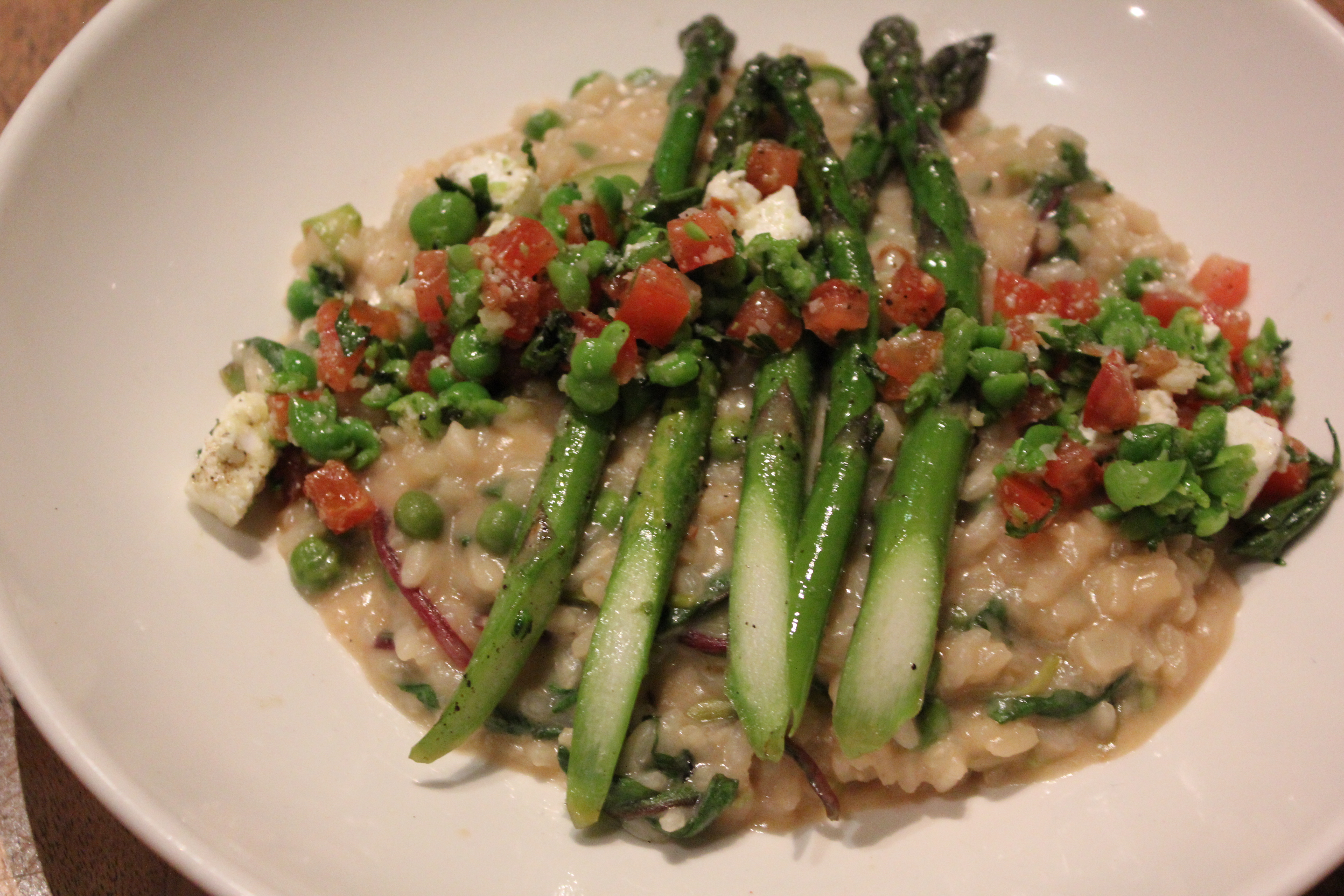 A few of us had pretty similar dishes to what we ordered. Looking at my neighbour, Queen of Bad Timing, she had the Asparagus, lemon, baby pea and feta risotto ($26) which looked lovely and creamy. iMasticate ordered the Homemade prawn and barramundi tortellini, grilled tiger prawns, saffron bisque ($32). I had a taste of one of the tortellinis which I was offered by iMasticate. It was huge, cooked perfectly to al dente and was filled with flavoursome seafood. The saffron bisque was rich and marries well with the flavours of the tortellini. To complement our mains, we decided to share a side of Brocollini, green beans, toasted almonds, lemon and herb crumb ($14).