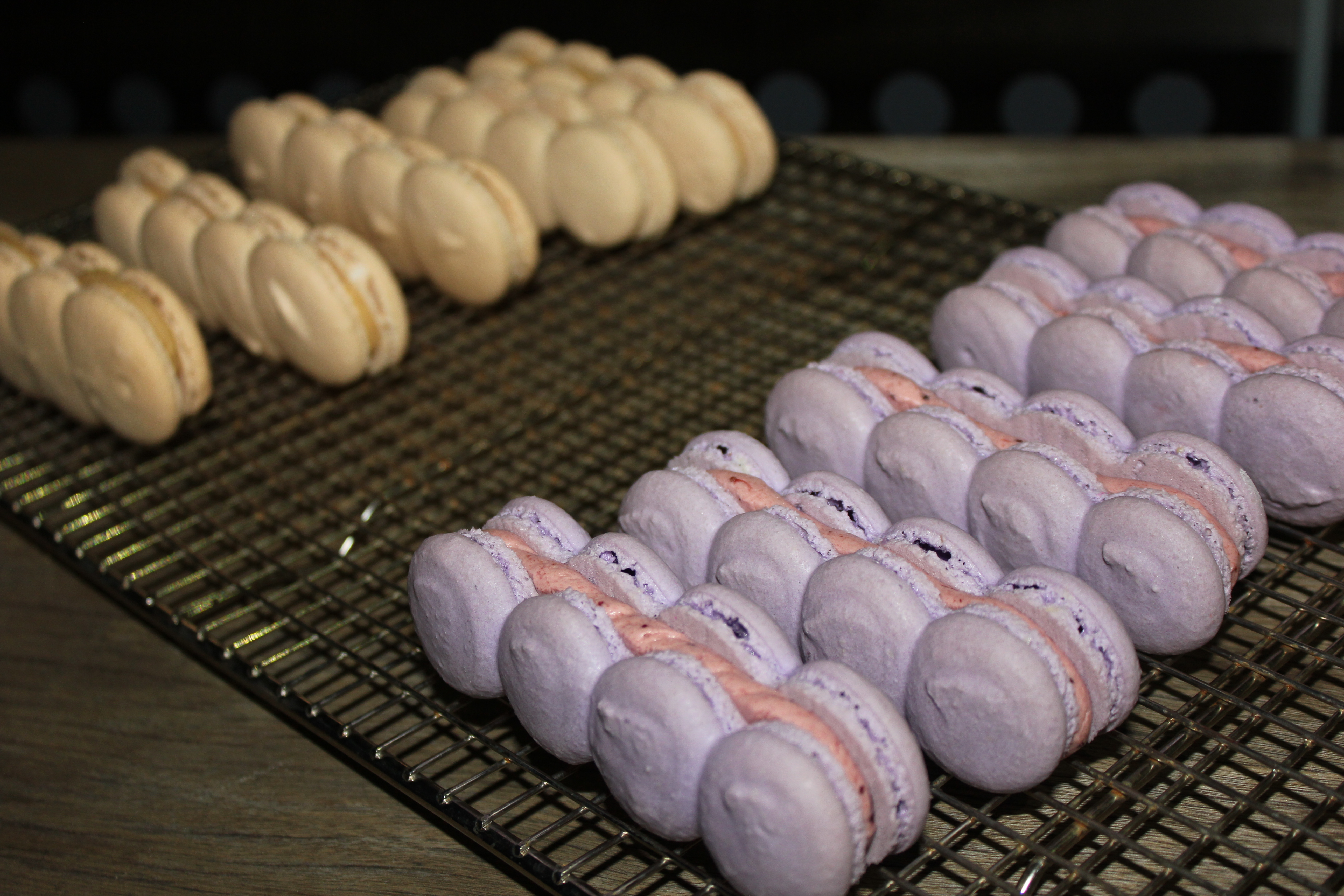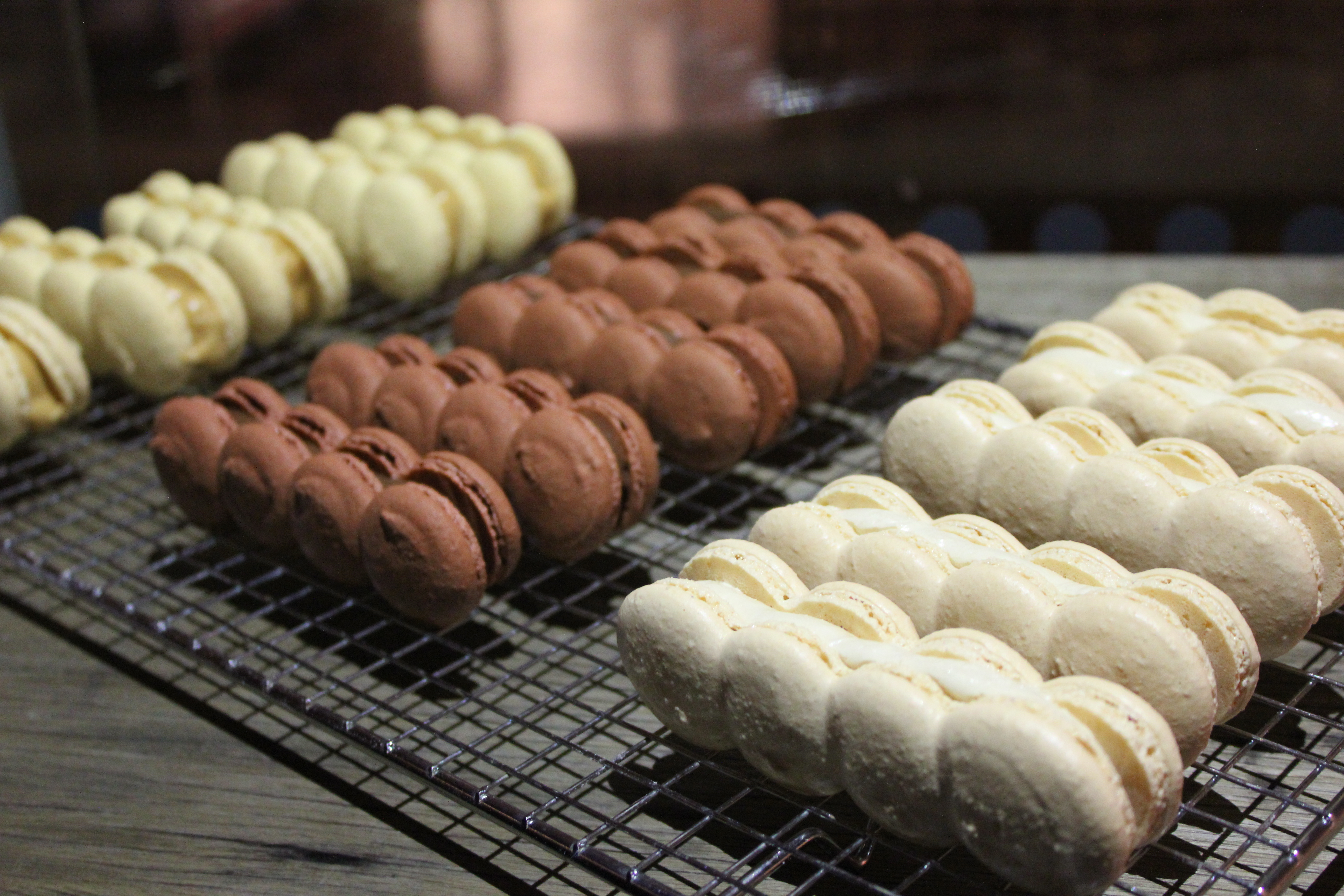 MAC-LAIRS – A macaron and éclair hybrid. Strawberry, peanut butter, salted caramel, coffee and Valrhona Caramelia 36%, and Valrhona Dulcey 32%