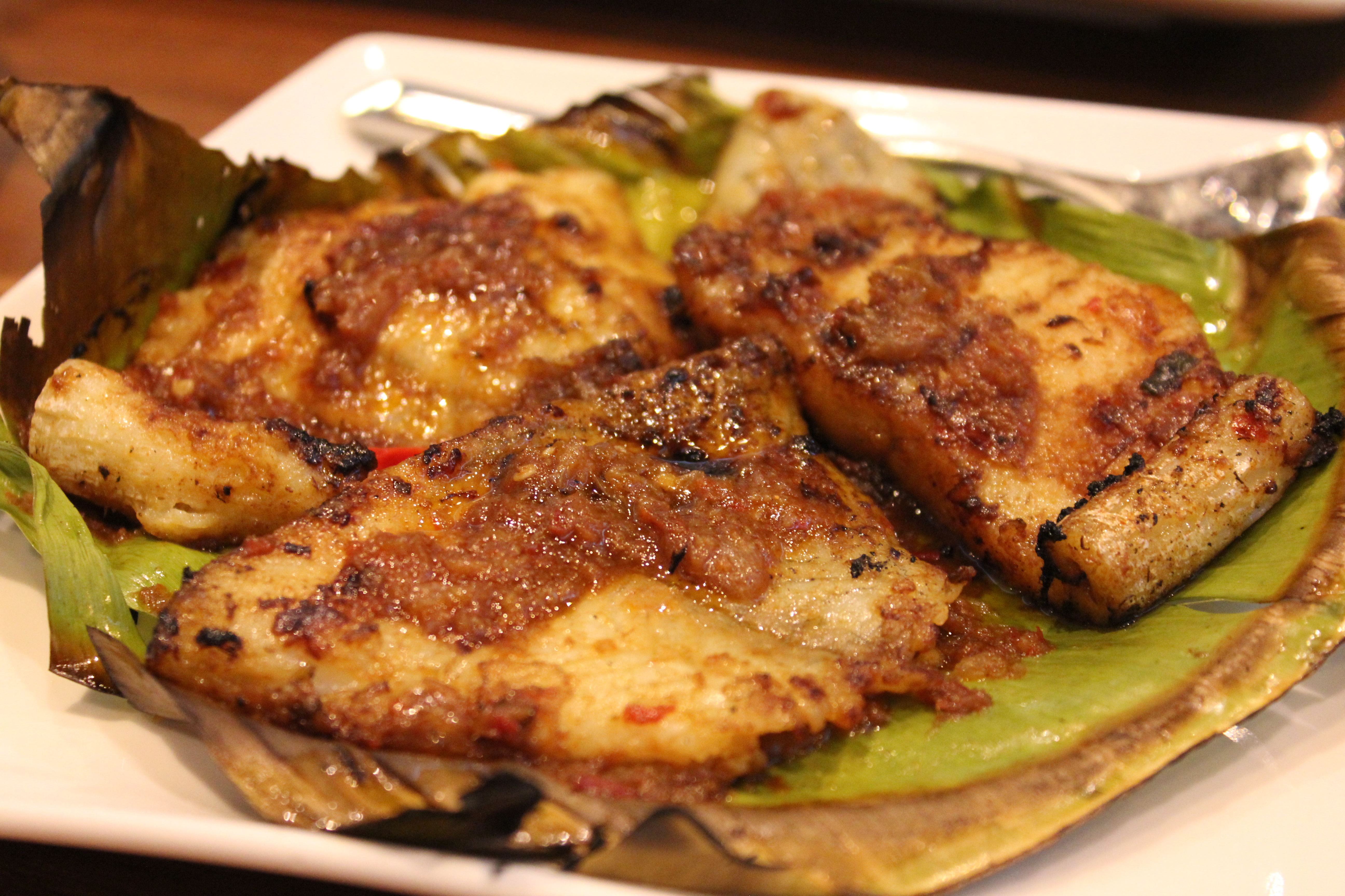 Barramundi Fillet grilled in banana leaves with spicy sambal sauce