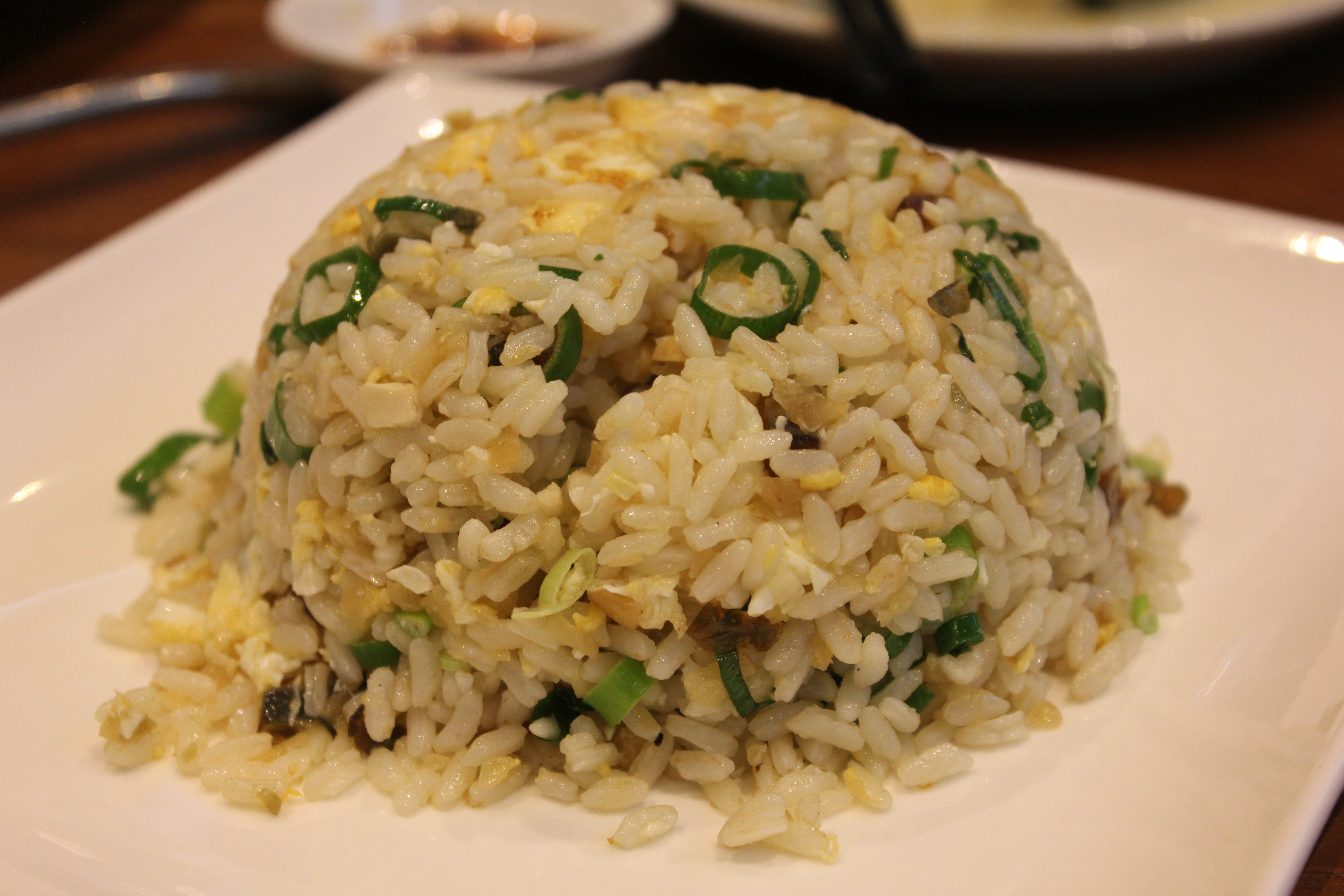 Wok fried medium grain fried rice with three kinds of eggs