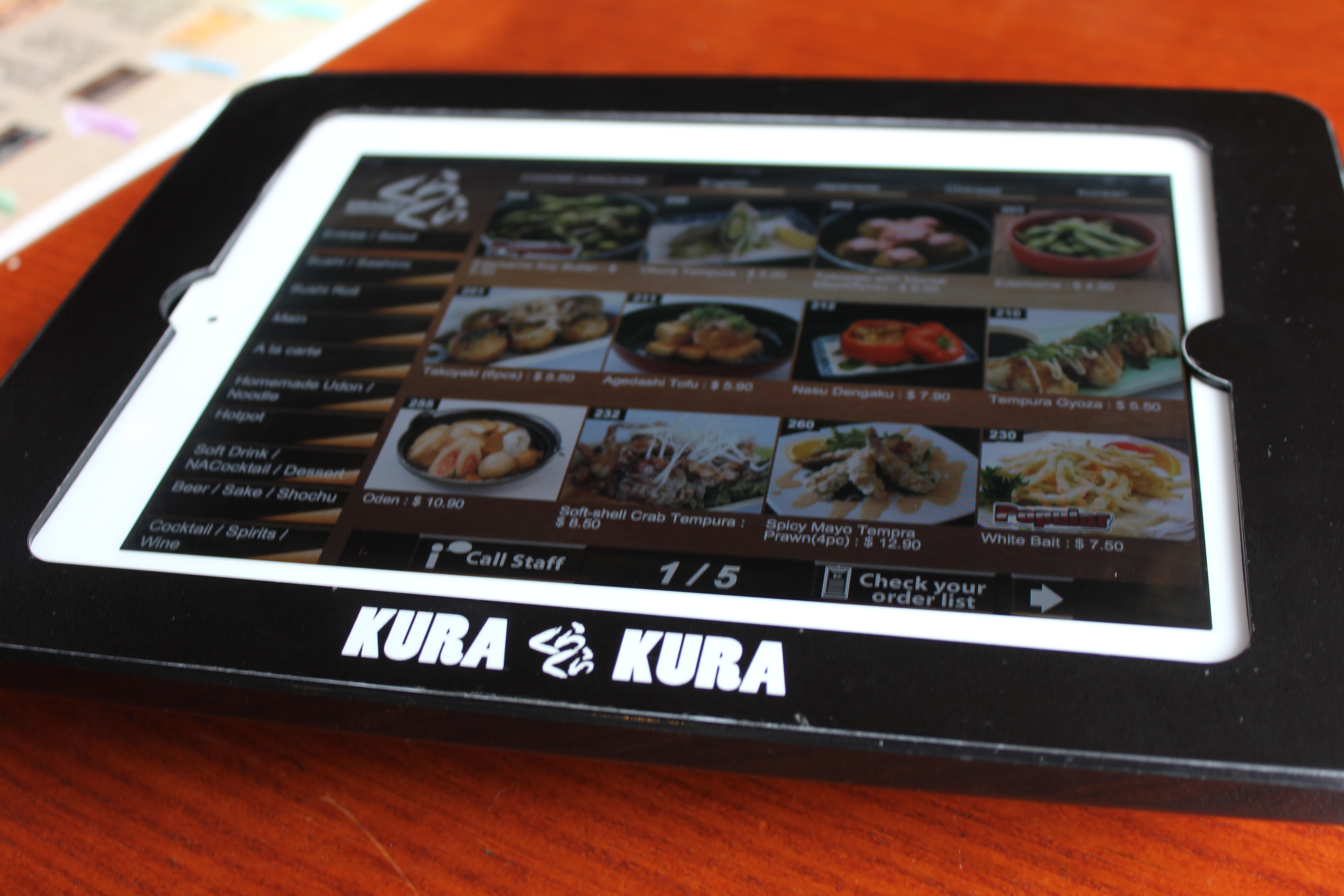 After a day spent relaxing and sitting around at Starbucks in Darling Harbour, we decided to head for an early dinner at Kura Kura so that we could retreat for an early night to do more packing. Kura Kura is located next to Market City at Haymarket. The restaurant is broken to two sections – an upstairs and downstairs section. The upstairs section gives you a restaurant feel and the downstairs eatery has a smaller space with a limited menu. We chose to proceed to the upstairs section and managed to find ourselves a table as we were there very early for dinner. Each table comes with an iPad where you can browse through the menu and place your order. It’s so convenient and super easy to use!