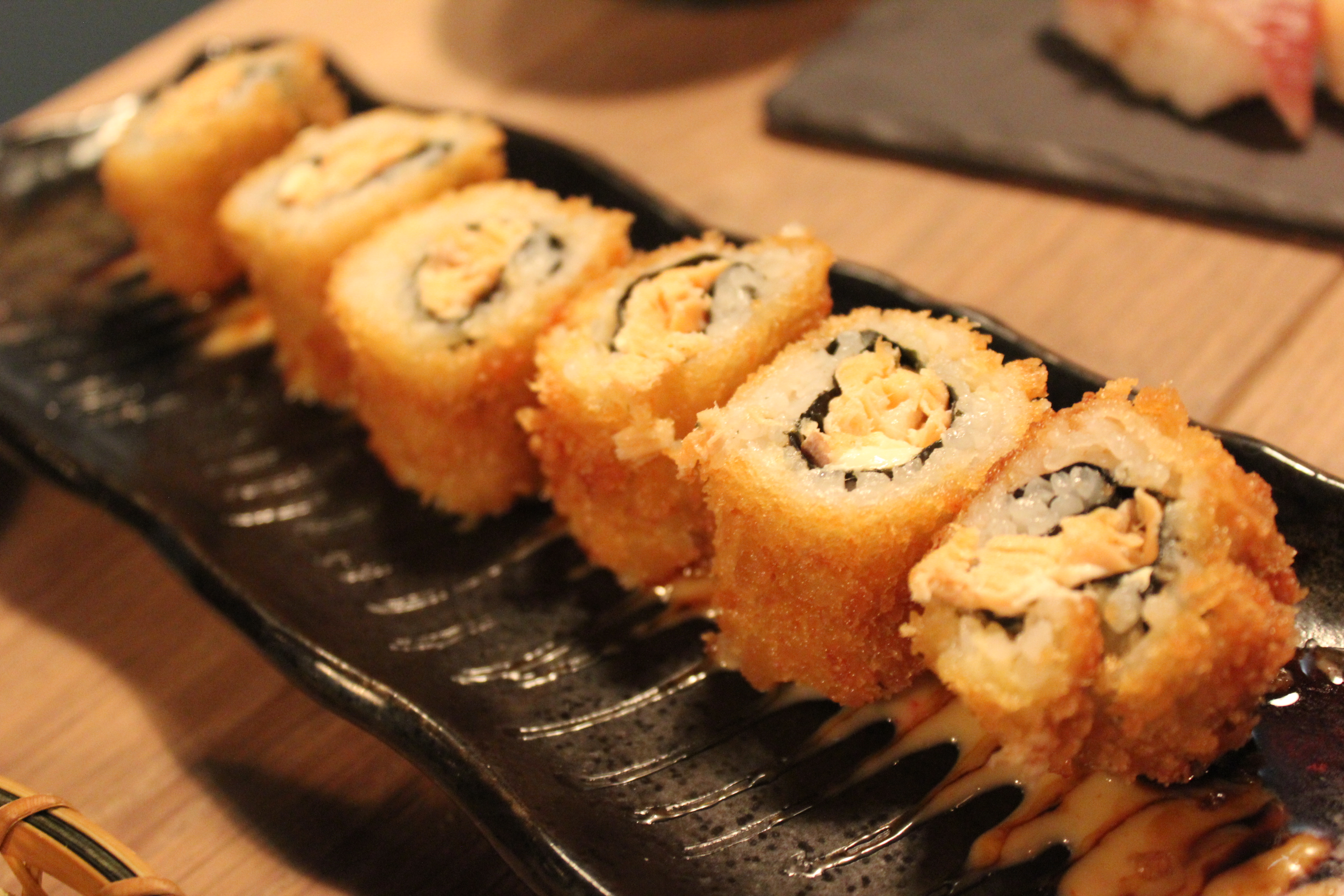 Next to arrive was the Fry Me To The Moon ($15) (I am really loving all these interesting names given to sushi rolls!) which is a deep fried roll with cooked salmon and cream cheese with sweet chilli mayo and sweet soy. This was my first time trying a deep fried sushi roll and I’ll admit, I’m hooked! It’s an interesting one compared to the common sushi roll as it’s crunchy on the outside with a hint of sweetness and smooth, creamy cream cheese inside.