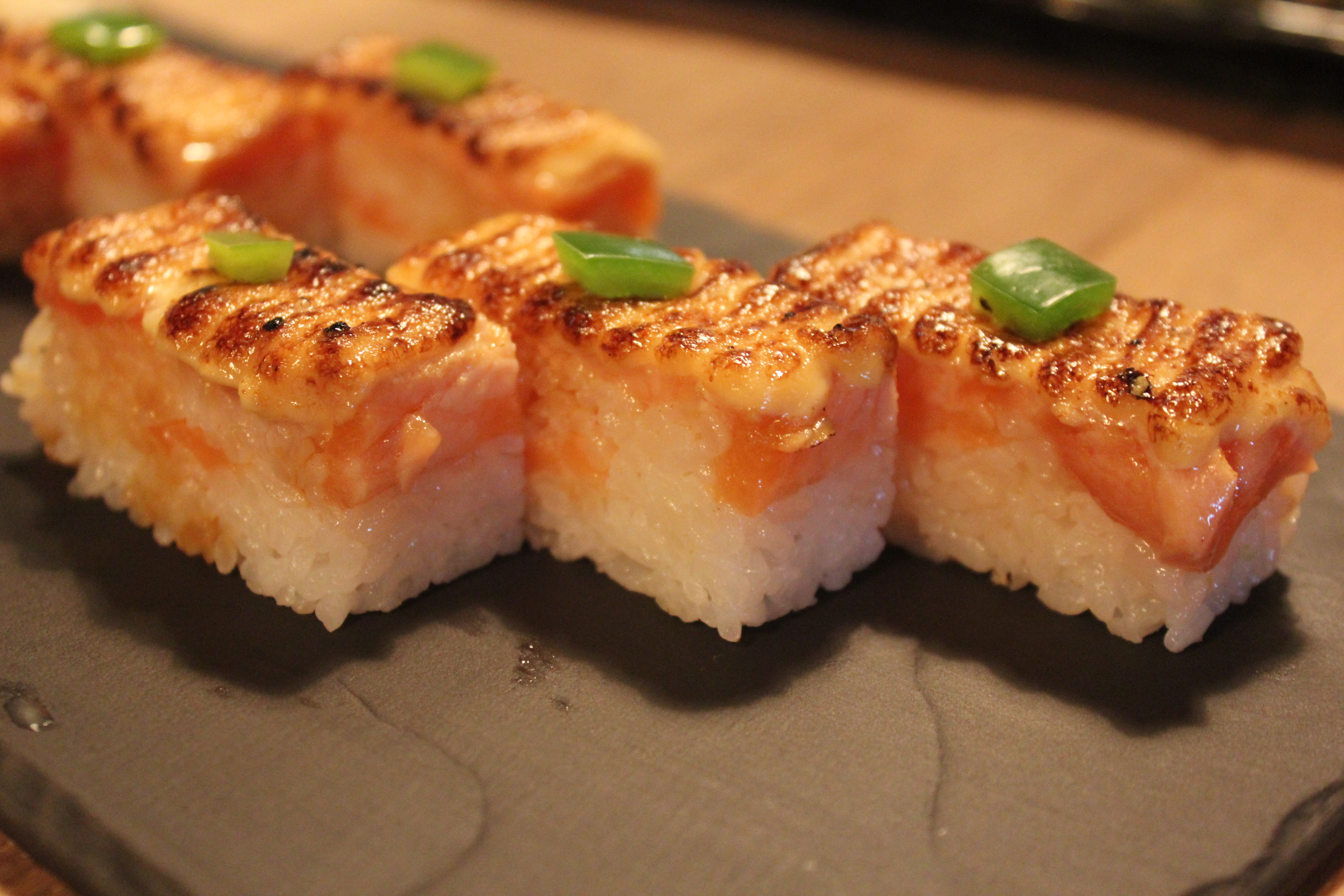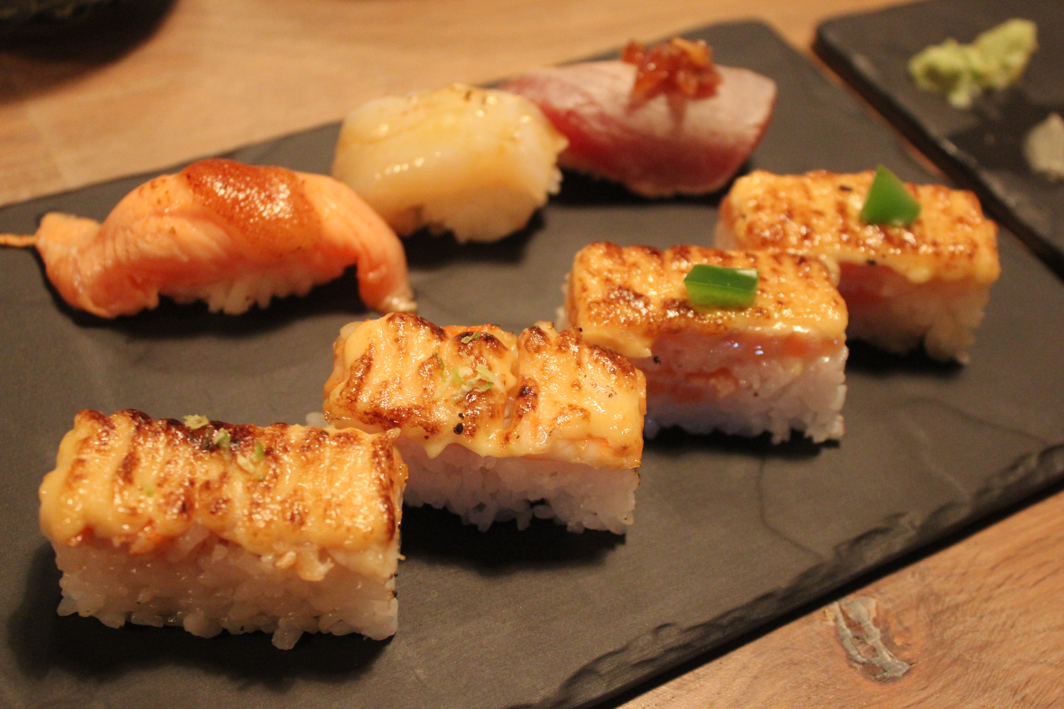 As recommended, we had the Signature Combo ($23) which comprises of 1 piece of Aburi Salmon Nigiri, Aburi Tuna Nigiri, Aburi Hotate Nigiri and 2 pieces of Salmon Oshi and Ebi Oshi. The nigiri pieces were fresh in flavour topped with a slab of juicy salmon, tuna and hotate. For me, the star of the signature combo would be the salmon and ebi oshi, which is the pressed salmon and ebi with aburi sauce and sweet soy. The salmon and ebi aburi is lightly seared on the top with a blow torch giving that slight charred finish. Texturally, it was melt in your mouth, slightly smokey and creamy in flavour. Impeccable! As the salmon oshi was melt in your mouth amazing, we decided to order and indulge in another serve of Salmon Oshi ($16).