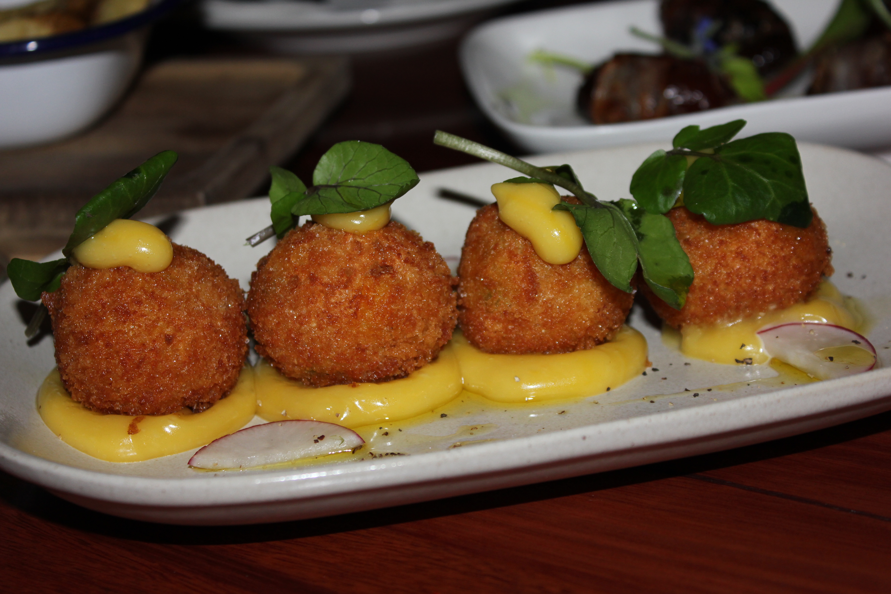 - Mushroom Croquettes, Truffle, Parmesan and Romesco ($14)