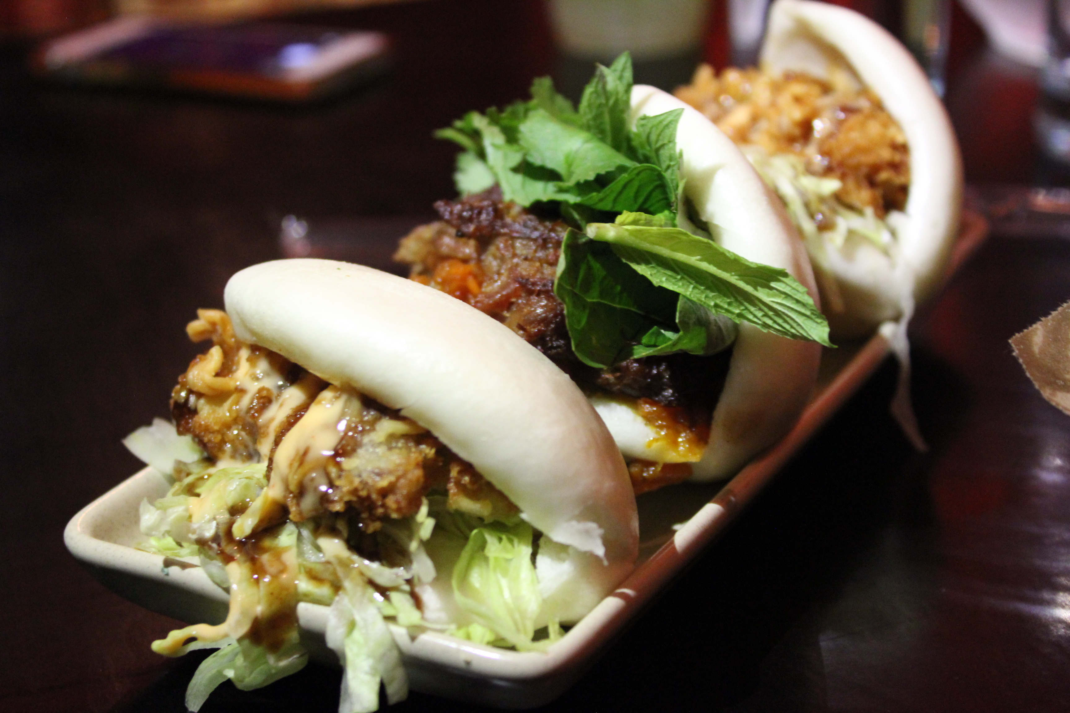 - Baos – Shanghai eggplant, pickled radish, onions and peanuts ($6 each), Buttermilk ramen chicken, iceberg and chilli mayo ($7 each), Miso glazed lamb shoulder, pickled orange and carrot relish and coriander ($7 each)