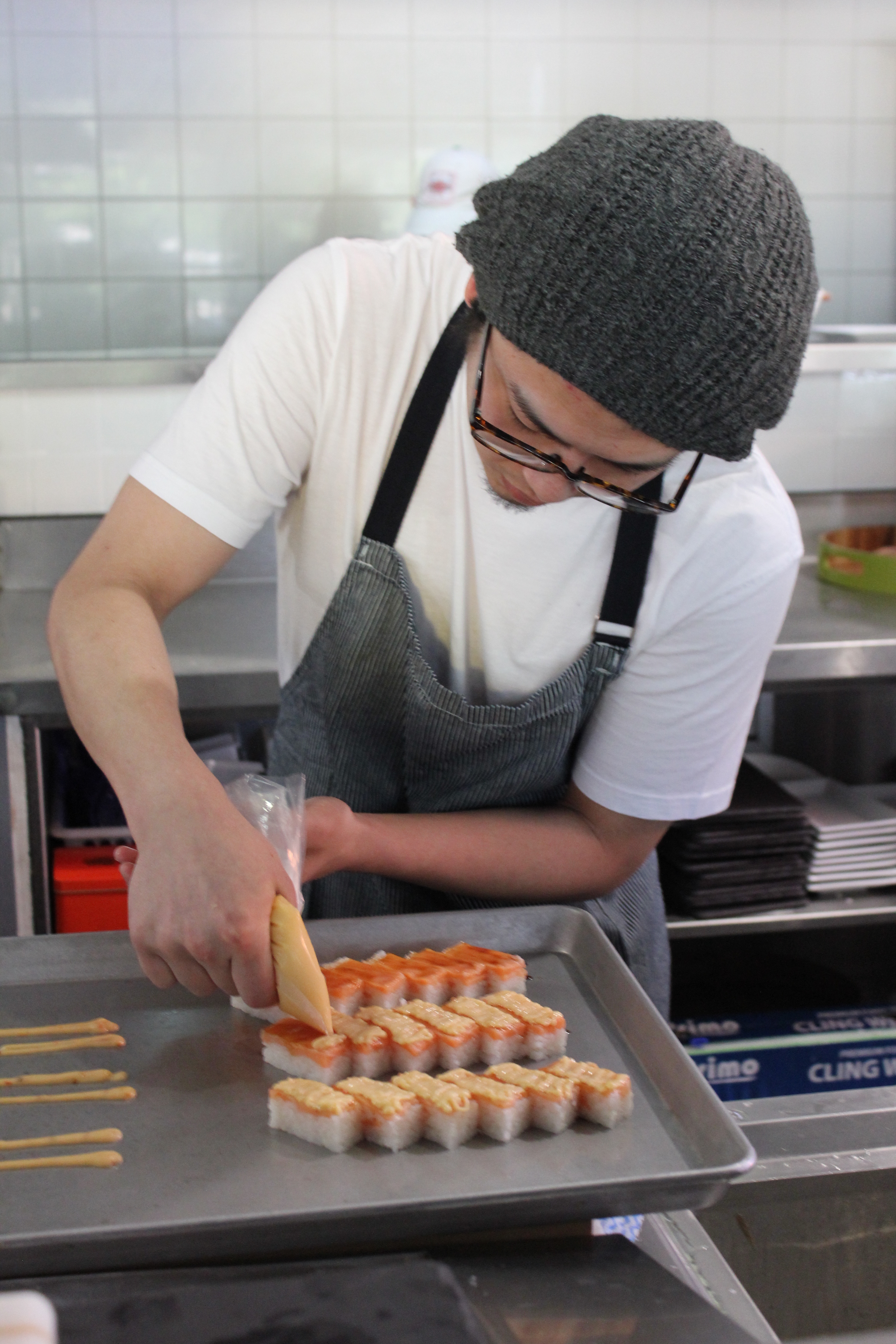 After the Raw Kitchen, we stopped by the Modern Eatery, which was just a short walk away. We were given some samples and a quick demonstration of how Modern Eatery’s famous aburi salmon oshi sushi were made along with their signature roll, “Fry Me To The Moon”.