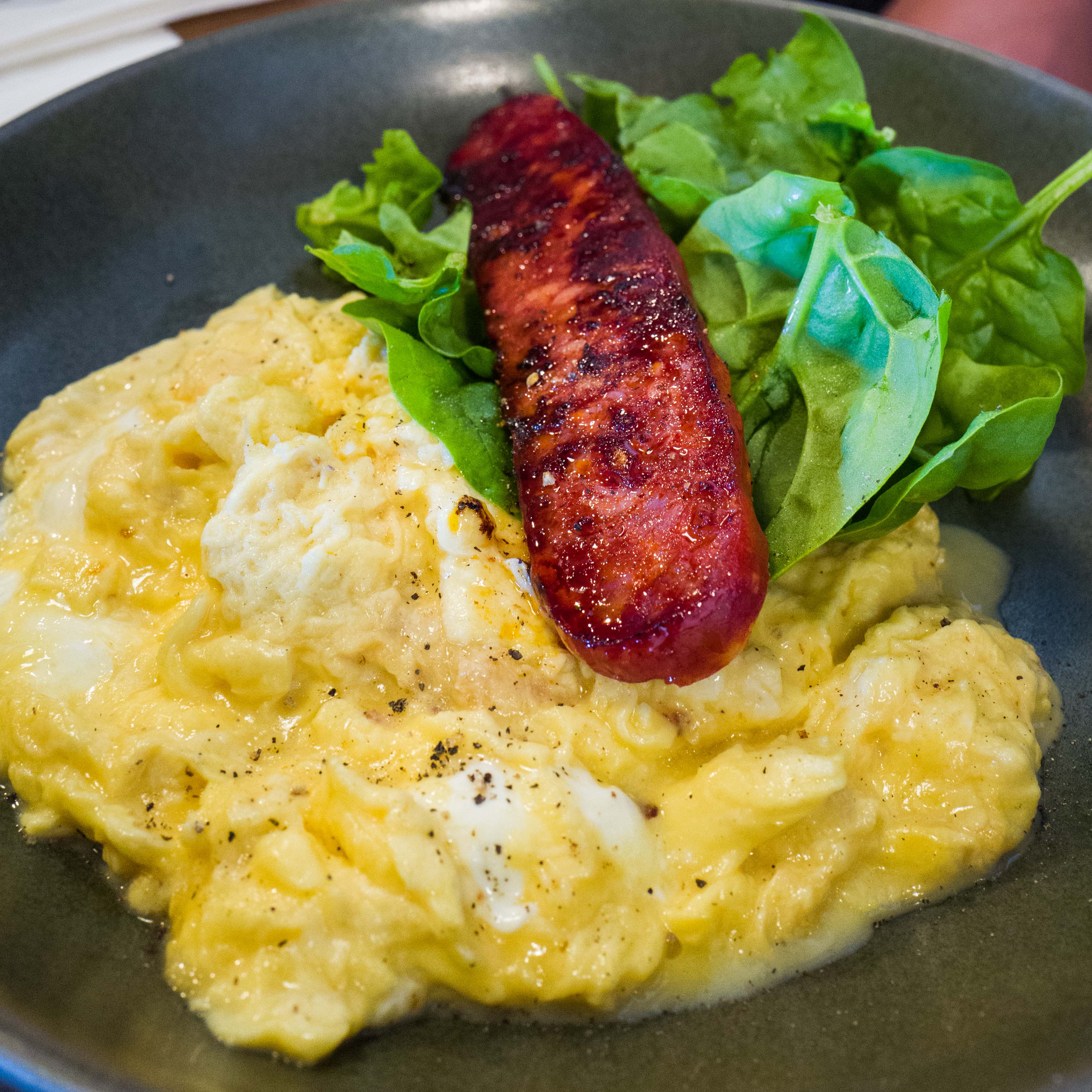 Ewen had the scrambled eggs, persian style feta, spinach and chorizo sausage ($19.50). We agreed that the scrambled eggs was indeed the highlight of this dish – it’s rich, fluffy with a creamy texture. In the sea of scrambled eggs, you could find little feta pieces which gave a salty and tangy flavour to the dish.